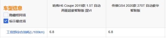 此外,兩款車的工信部綜合油耗值均為6.8L/百公里。不過,新哈弗H6 Coupe搭載7速濕式雙離合變速箱(7DCT),比傳祺G4S搭載的6AT變速箱傳動(dòng)效率稍高些,加上新哈弗H6 Coupe具有發(fā)動(dòng)機(jī)啟停功能,在城市行車中更利于節(jié)省燃油。根據(jù)新哈弗H6 Coupe用戶在汽車論壇曬出的油耗,很多用戶的百公里實(shí)際油耗在7L上下,以目前油價(jià)來估算,他們每公里燃油費(fèi)不到4毛錢,如此省油的車不香嗎?