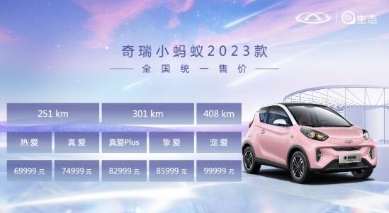 本次直播活動我們不僅揭秘了“頂流”奇瑞小螞蟻成功背后的秘密,深切感受奇瑞新能源深厚先進的智造技術底蘊,還和萬千網友一起見證了奇瑞小螞蟻2023款上市高光時刻。新車包括251km、301km、408km三種續(xù)航五個版型,官方指導價69999元起。