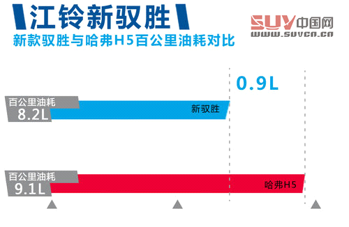 新馭勝在搭載了與路虎衛士相同的2.4T柴油增壓引擎同時,其還匹配了來自德國采埃孚品牌的6AT變速器,該變速器不僅具有重量輕和提升加速性能等特點,而且相比普通5AT其油耗可節約8%左右。由2.4T發動機和6A組成的動力系統,使得新馭勝350的百公里油耗僅為8L,大大降低了用戶的使用成本。