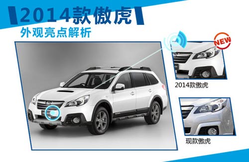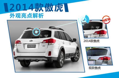 全新傲虎整體外觀相比現款傲虎有所改變,新車延續斯巴魯家族化的前臉設計,加大了進氣格柵面積,前大燈造型也更加犀利,車身整體線條更顯硬朗,輪轂樣式也有變化。新車尾部的造型較現款車型也有明顯不同,新車尾翼寬度明顯加大,使得該車運動更加突出,尾燈的造型也經過了重新設計。
