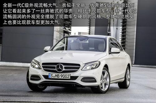 從外觀上看:全新一代C級(jí)外觀流暢大氣,類似于全新一代奔馳S級(jí)的輪廓比例讓它看起來(lái)多了一絲奔馳式的華貴。相比于現(xiàn)款車型,新一代C級(jí)流暢圓潤(rùn)的外觀完全擺脫了現(xiàn)款車型硬朗的風(fēng)格,整體視覺(jué)感受上也要比現(xiàn)款車型更加大氣。全新一代奔馳C級(jí)基于MRA后驅(qū)平臺(tái)打造,大量輕量化材料的運(yùn)用大幅降低了整車重量。