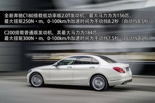 動(dòng)力方面:此次發(fā)布的新一代C級(jí)曝光信息中有兩款汽油發(fā)動(dòng)機(jī)車型和一款柴油機(jī)車型。兩款汽油機(jī)車型分別為C180和C200,其中C180搭載低功率版2.0T發(fā)動(dòng)機(jī),其最大功率為156馬力,最大扭矩250N·m,官方標(biāo)稱的0-100km/h加速時(shí)間為手動(dòng)擋8.2秒(自動(dòng)擋8.5秒)。C200搭載另一種調(diào)校的發(fā)動(dòng)機(jī),其最大功率為184馬力,最大扭矩300N·m,0-100km/h加速時(shí)間為手動(dòng)擋7.5秒(自動(dòng)擋7.3秒)。