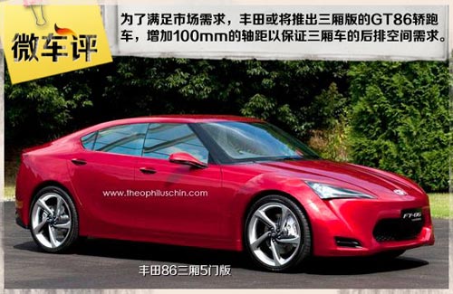 根據(jù)之前的消息顯示,三廂版GT86將增加100mm的軸距以保證三廂車的后排空間需求。如果計(jì)劃順利,新車將在明年一月北美車展上亮相首輪概念車模型。