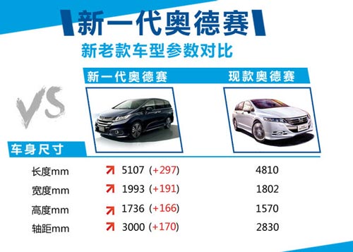 作為一款MPV車型,乘坐舒適性以及車內(nèi)空間是該類別車型最為主要的衡量標(biāo)準(zhǔn),也因此全新奧德賽在車身尺寸方面進(jìn)行了全面提升。新車型長/寬/高分別為5107/1993/1736mm,軸距為3000mm,較現(xiàn)款?yuàn)W德賽的車身尺寸有了大幅度提升,從而為車內(nèi)乘員提供更為充足的頭部空間。