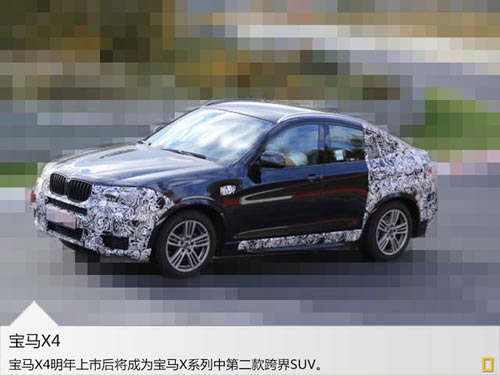 目前寶馬SUV產品陣容中,僅有一款跨界SUV-X6,其在今年4月的上海車展期間也亮相了一款X4概念車,該車的量產版也將在明年1月開幕的北美車展上正式亮相。寶馬集團CEO諾伯特?雷瑟夫曾表示:“我們正在對X4這一車型進行研發,預計將在2014年上市?!睂汃RX4是基于X3平臺打造的第二款跨界SUV,新車將搭載2.0T(高功率)、3.0T直列六缸兩款發動機,與之匹配的則是寶馬傳統的8AT變速器。