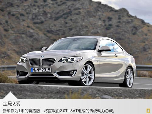 寶馬4系為3系的轎跑版車型,而2系同理為1系的轎跑版,在即將到來的馬年,寶馬還將推出一款2系Coupe,新車將搭載由2.0T引擎與8AT組成的動力系統,此外M235i還將搭載一臺3.0T直列六缸渦輪增壓引擎,最大功率240kw,分支扭矩450N·m。