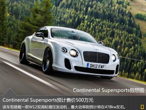 賓利作為超豪華品牌之一,其在超級跑車領(lǐng)域也擁有歐陸系列產(chǎn)品,而預(yù)計在2014年其將推出一款Continental Supersports(歐陸超跑)產(chǎn)品,該車型搭載一款W12雙渦輪增壓發(fā)動機,最大功率則預(yù)計將在478kw左右,而根據(jù)老款歐陸Supersports的售價,全新車型預(yù)計將在500萬元左右。