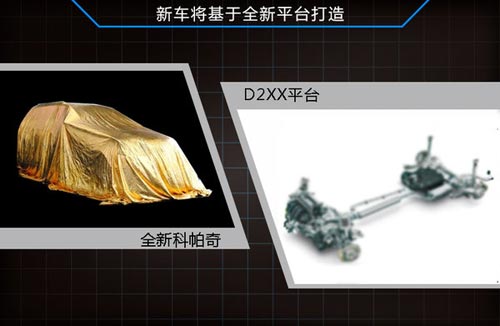 新車將會與新一代科魯共享同一平臺,基于通用汽車旗下最新的D2XX平臺打造。由于與該車采用相同平臺開發的歐寶SUV安德拉軸距將會加長23mm,因此預計全新科帕奇的軸距也有望對應加長。該平臺是由通用原有的Delta II平臺和Theta平臺整合而來,而此前基于原有平臺所生產的車型今后都將在D2XX平臺上來進行開發,這代表日后的多款新車型將會實現資源共享和動力總成的共通。此外,到2018年這款平臺將被用于通用旗下品牌包括雪佛蘭、歐寶、別克和凱迪拉克等總計約250萬輛車上。