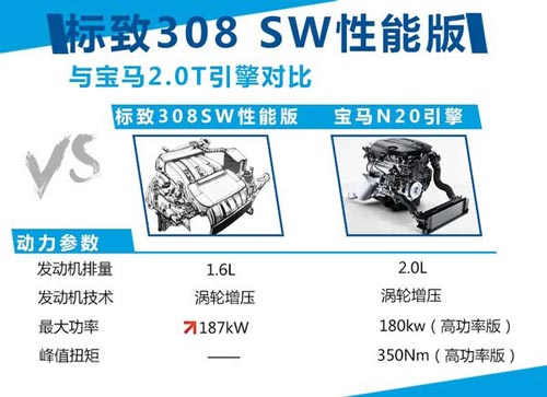 標致旗下全新A級兩廂轎車308已在海外正式上市,而未來也將基于該款產品推出多種衍生車型,其中308 SW旅行版的官方圖片已正式公布,并將在今年3月舉辦的日內瓦車展上正式亮相。近日網通社了解到,標致還將以308 SW車型為藍本,推出一款性能版產品。全新車型將搭載一款經過調教的1.6T發動機,最大功率達到186kw,已超過目前寶馬所使用的2.0T高功率版引擎。