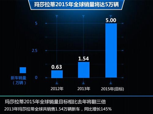 瑪莎拉蒂作為超豪華品牌,其在2013年得益于新總裁等車型的推出,使?fàn)I業(yè)收入同比實(shí)現(xiàn)翻倍(2013年?duì)I業(yè)收入約140.3億人民幣)。并且在2013年所銷售的1.54萬輛新車中,總裁系列產(chǎn)品占據(jù)了超過50%的總銷量份額,在去年9月份上市的入門級產(chǎn)品Ghibli也銷售了3000輛新車。可以看出較低的售價(jià)是其呈現(xiàn)大幅增長趨勢的主要原因。而根據(jù)該品牌的相關(guān)規(guī)劃,其2015年全球預(yù)計(jì)銷量目標(biāo)將達(dá)到5萬輛,也因此新車型的推出將成為其既定目標(biāo)能否實(shí)現(xiàn)的重要因素之一。
